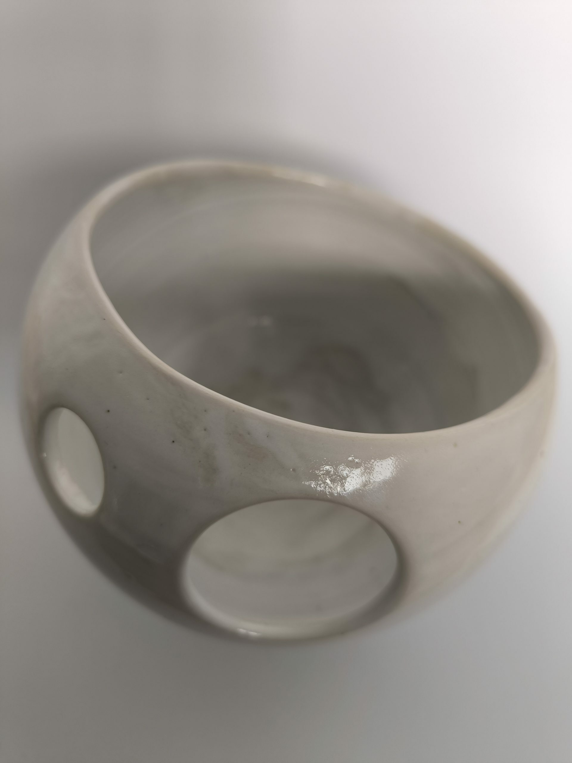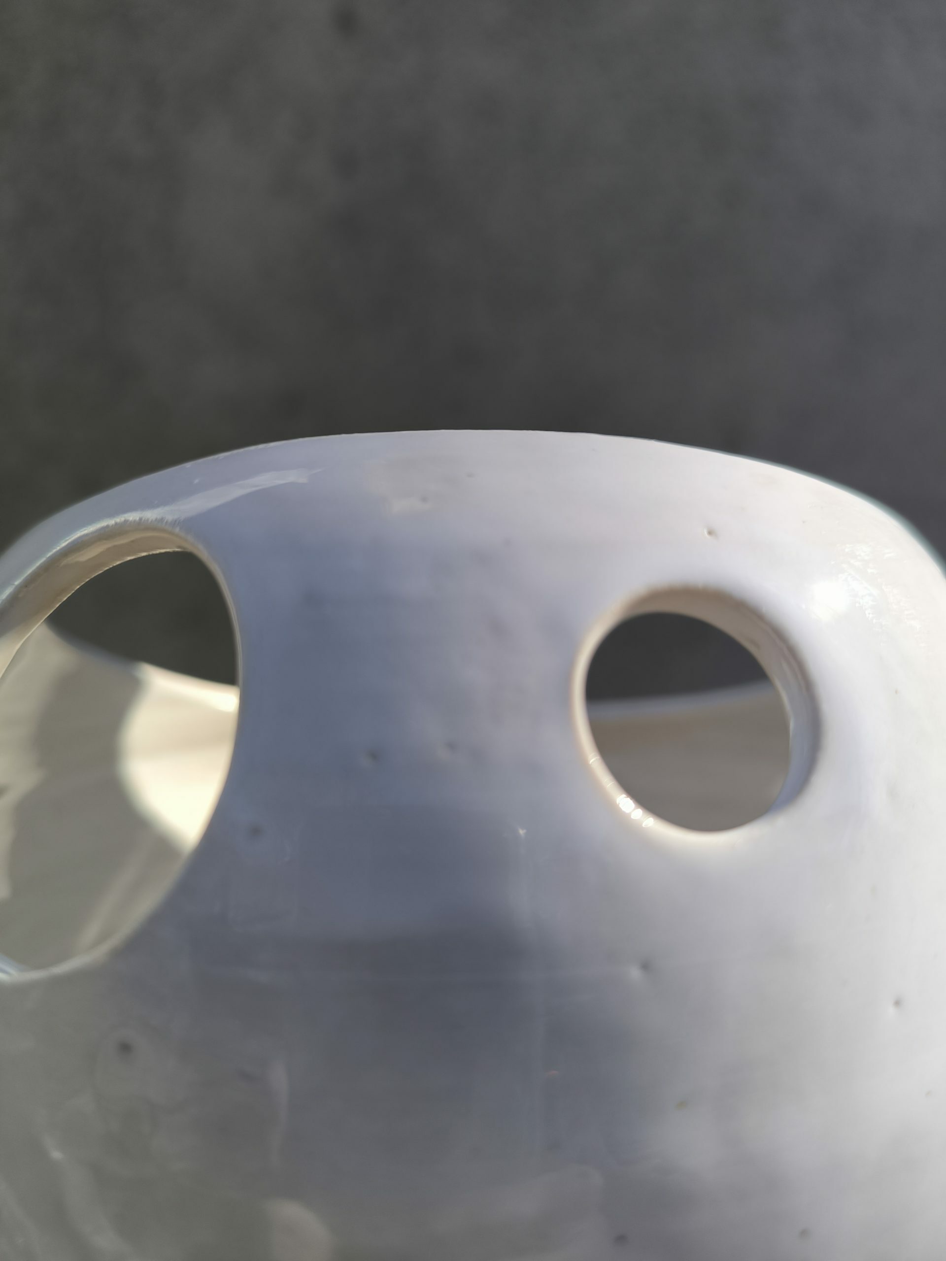 Test amb plat de forma arrodonida amb forats decoratius.