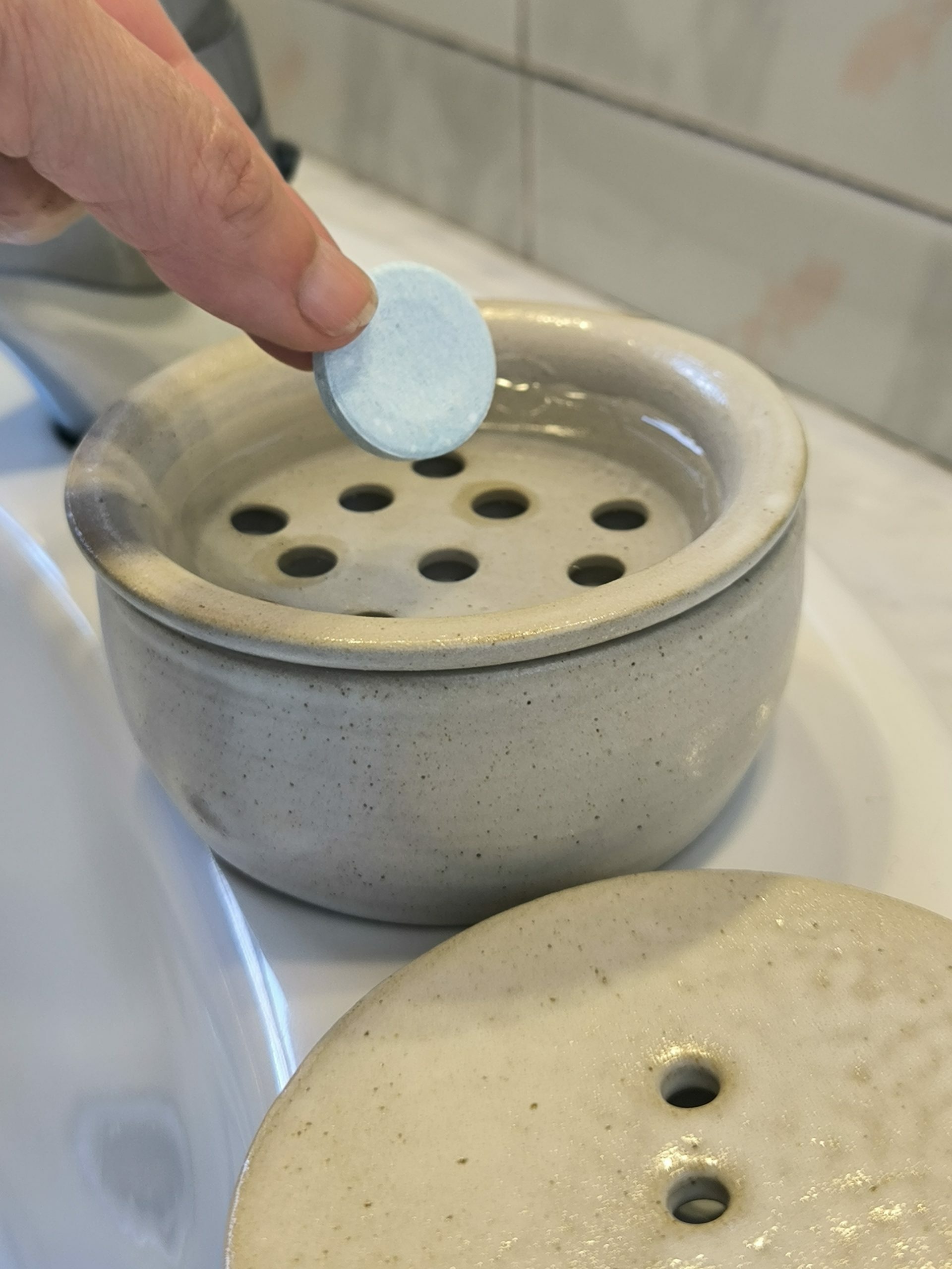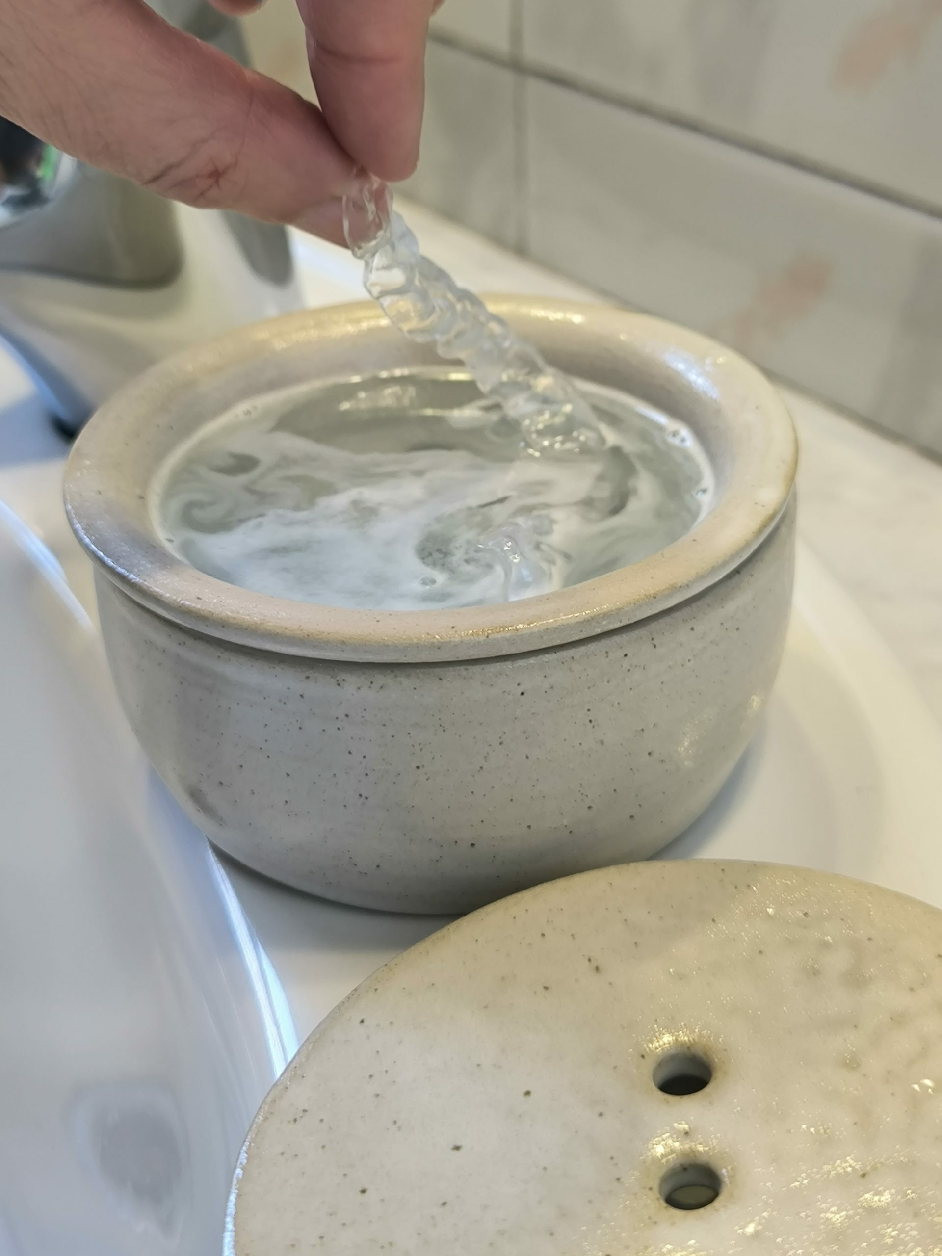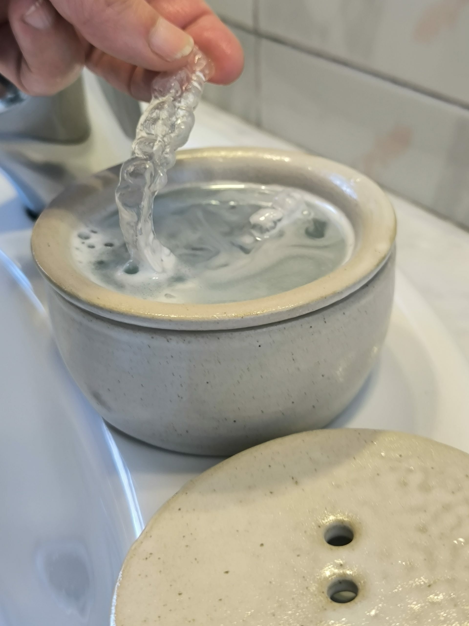 - Poses una pastilla efervescent per netejar fèrules dentals