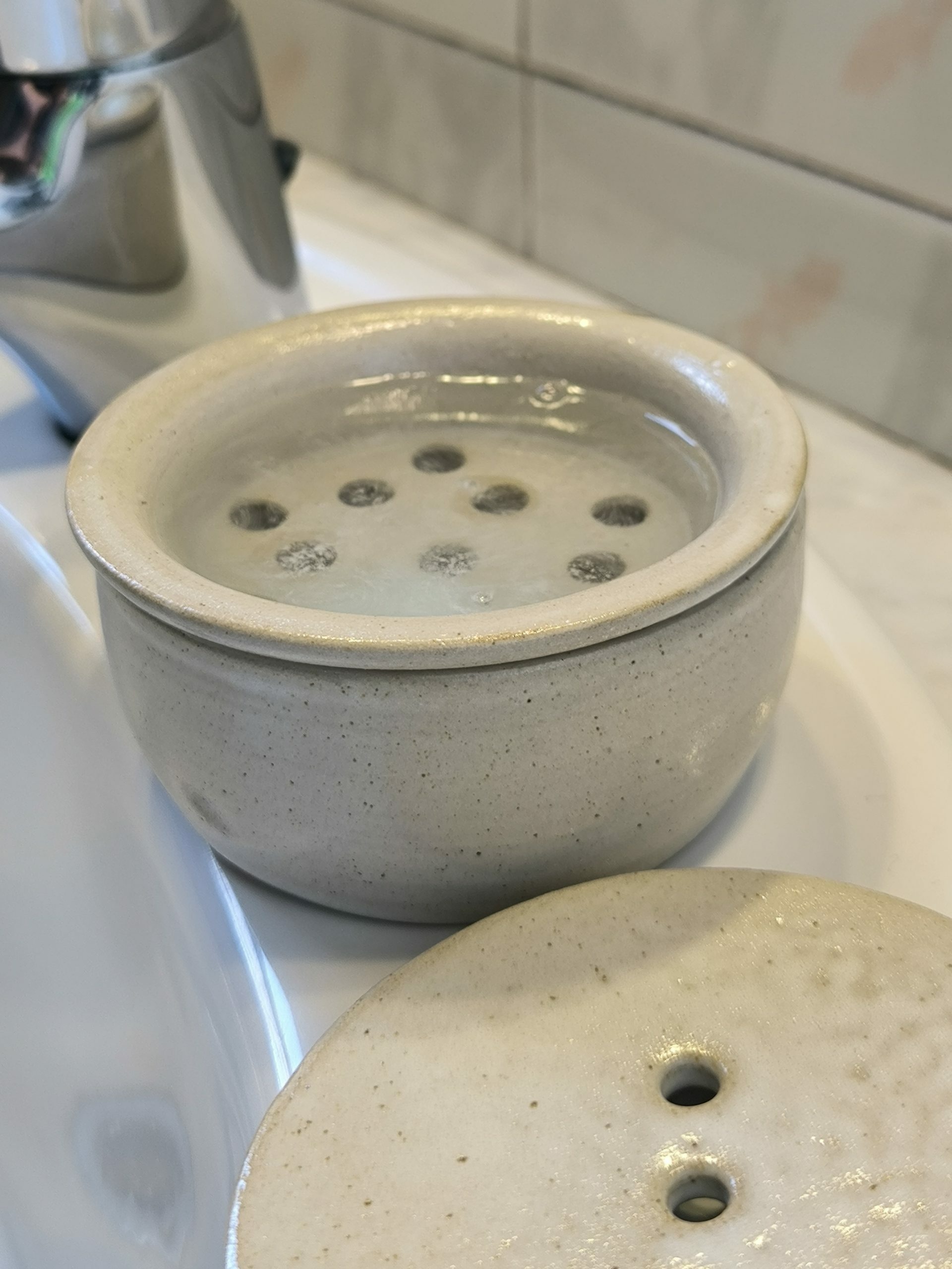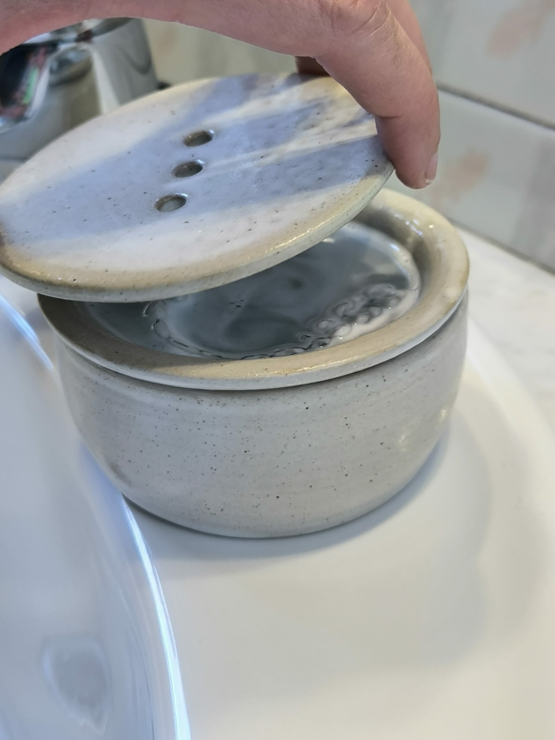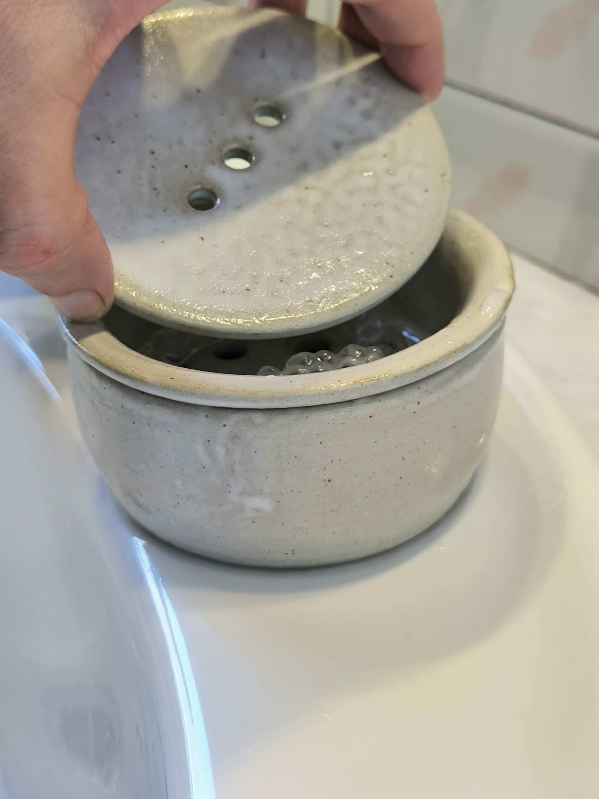 Si no uses pastilles per al rentat, simplement neteja la fèrula com acostumes i guarda-la a la Hymy després d’esbandir-la. El colador i els forats de la tapa permetes que la fèrula s’assequi sense estar en contacte amb les restes d’aigua.
