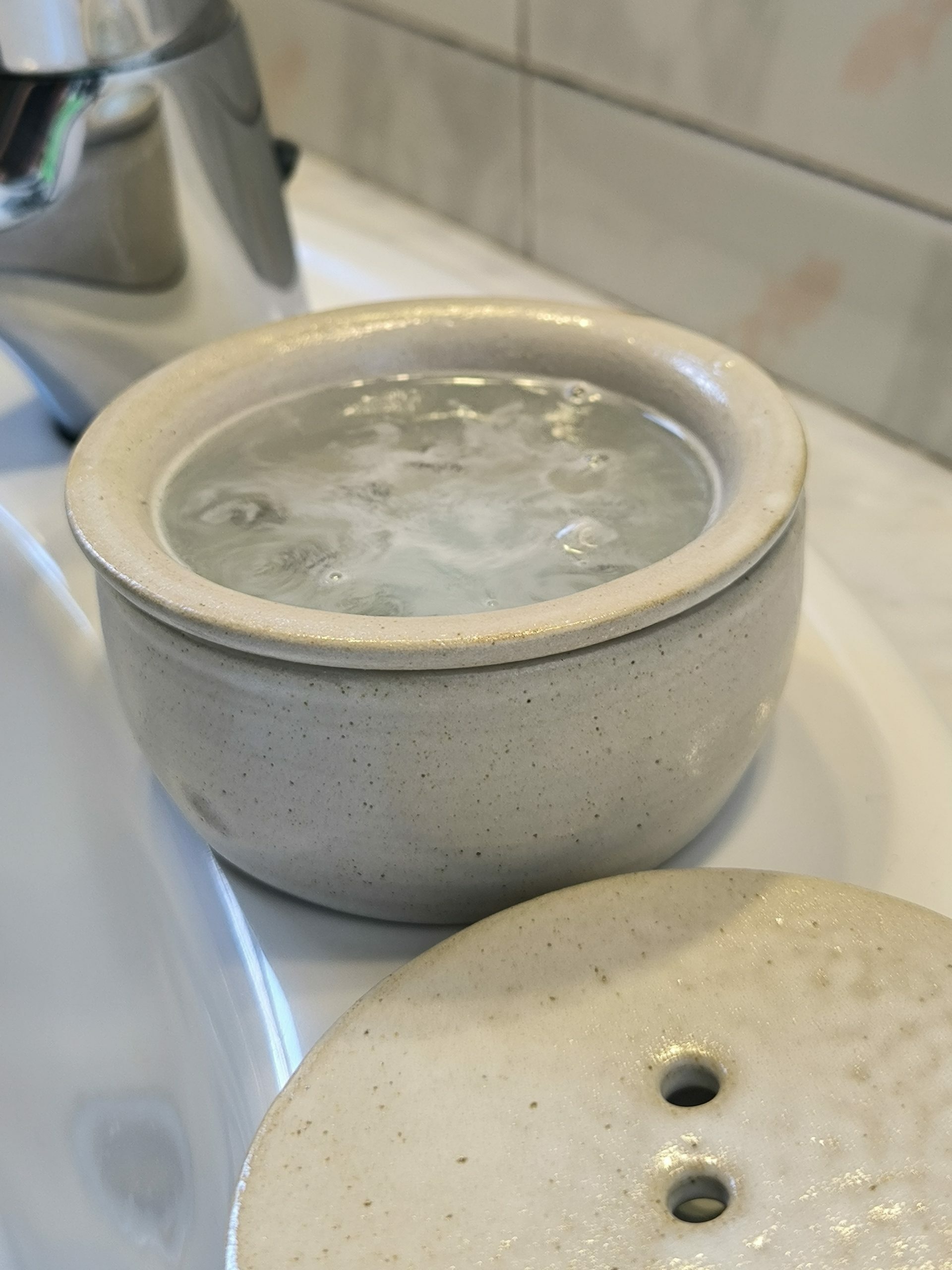 - Emplenes d’aigua el recipient amb el colador