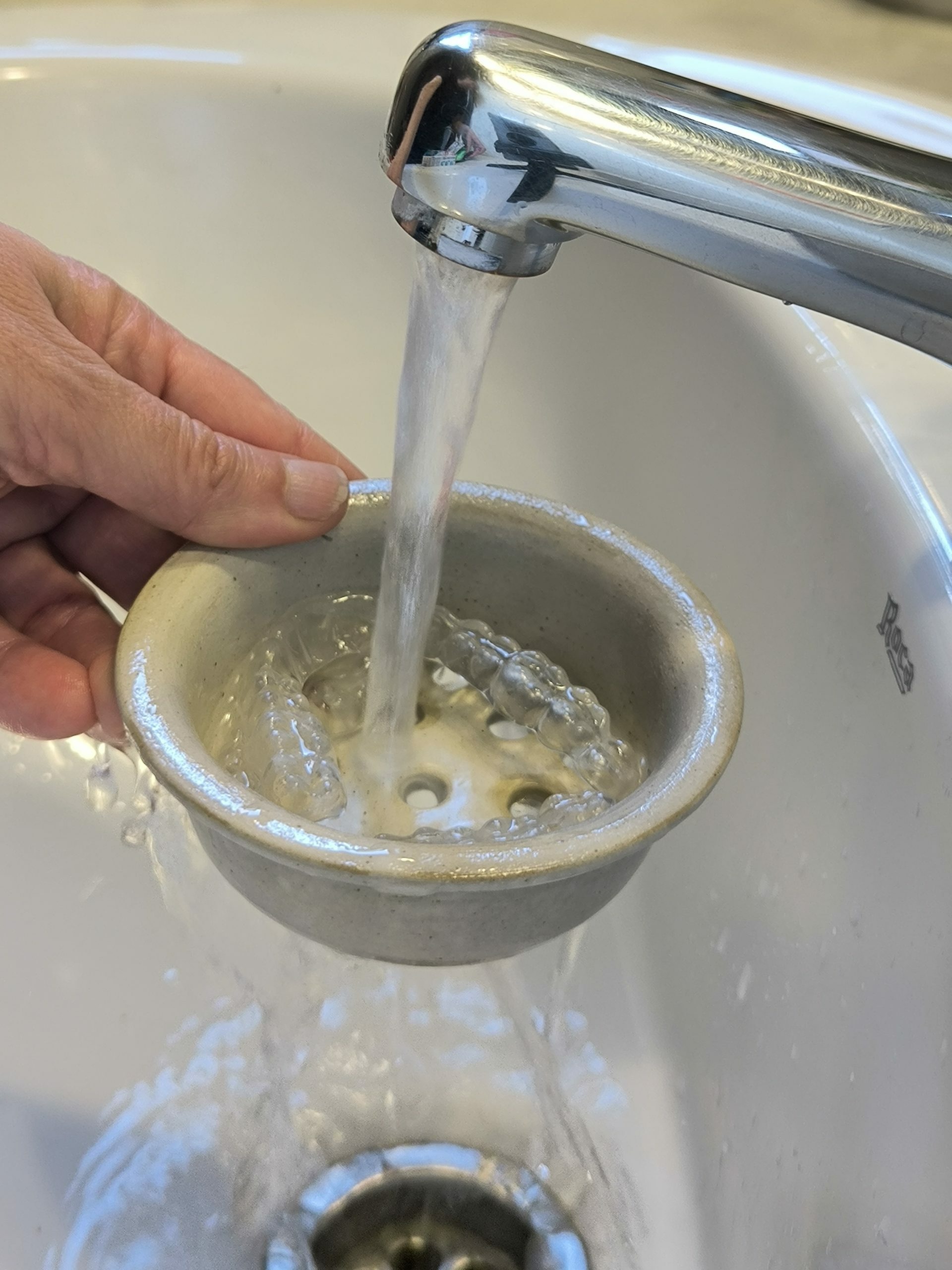 - Esperes el temps indicat i fas servir el colador per esbandir la fèrula sota l’aixeta sense necessitat de tocar-la