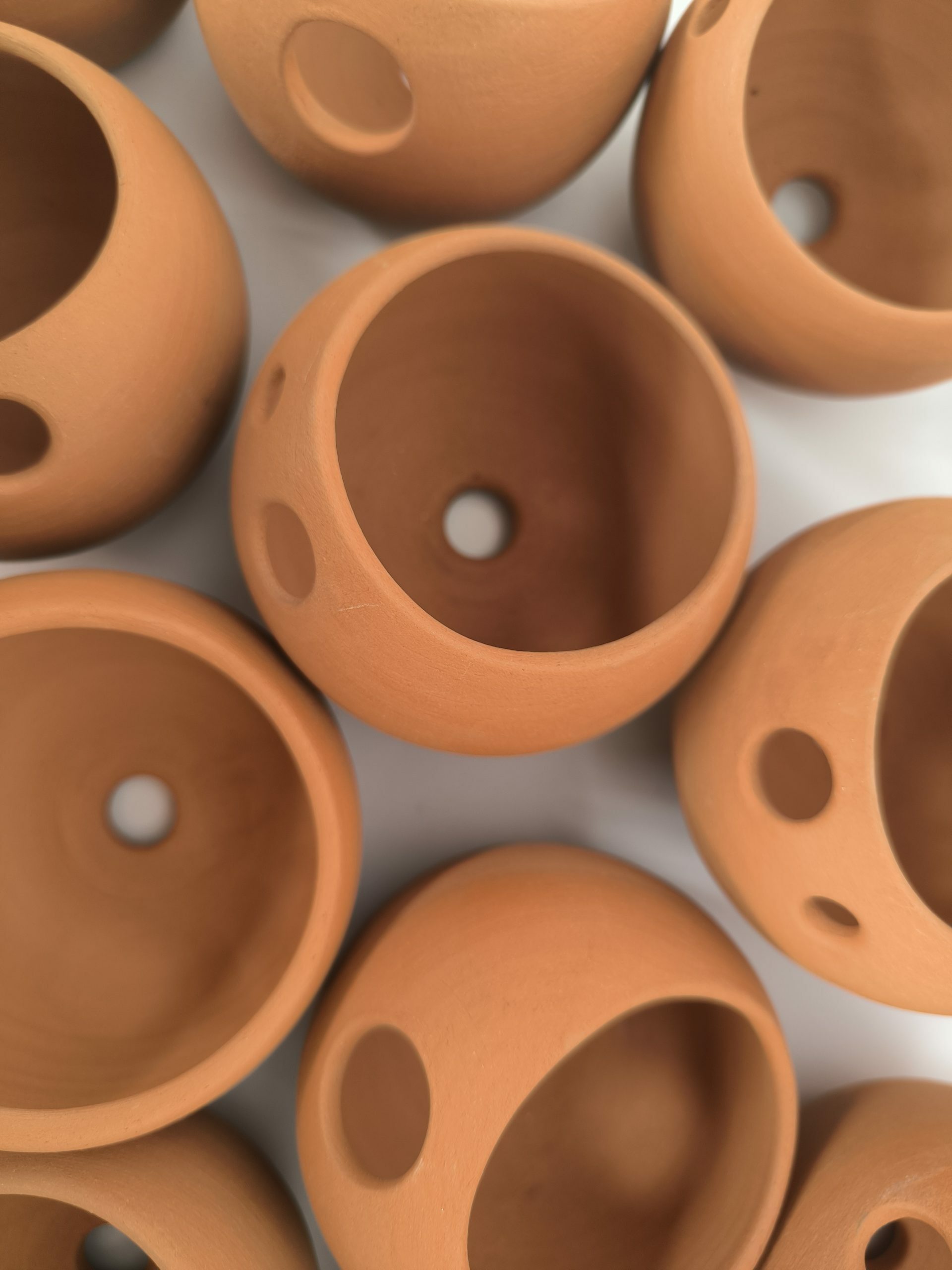 Els testos de la sèrie Malplena Mini tenen una capacitat d’entre 0,15 i 0,75 L. Amb mides que van des d’aproximadament 8 cm d’alçada per 8 cm d’amplada fins a 15 per 15 cm.