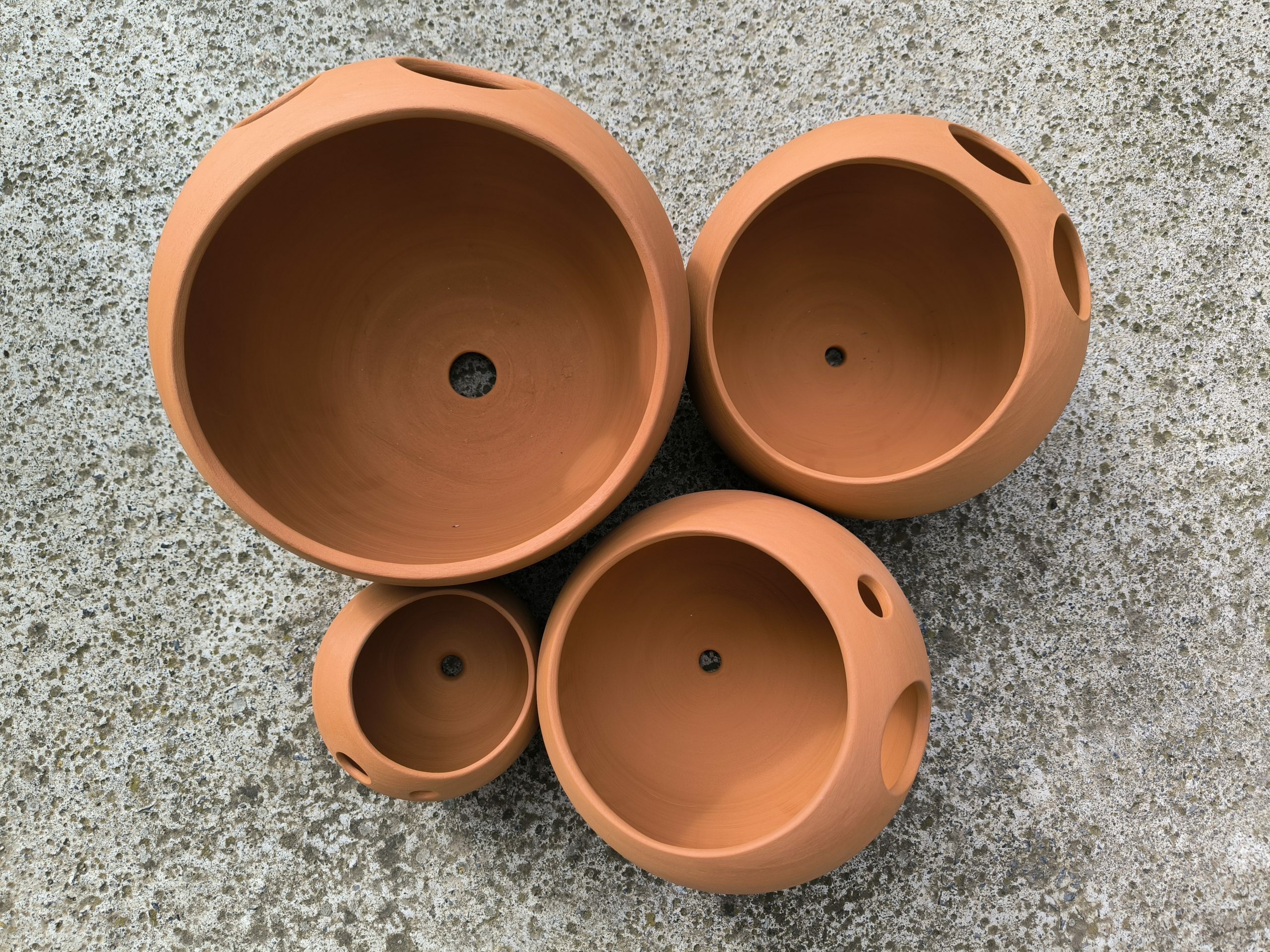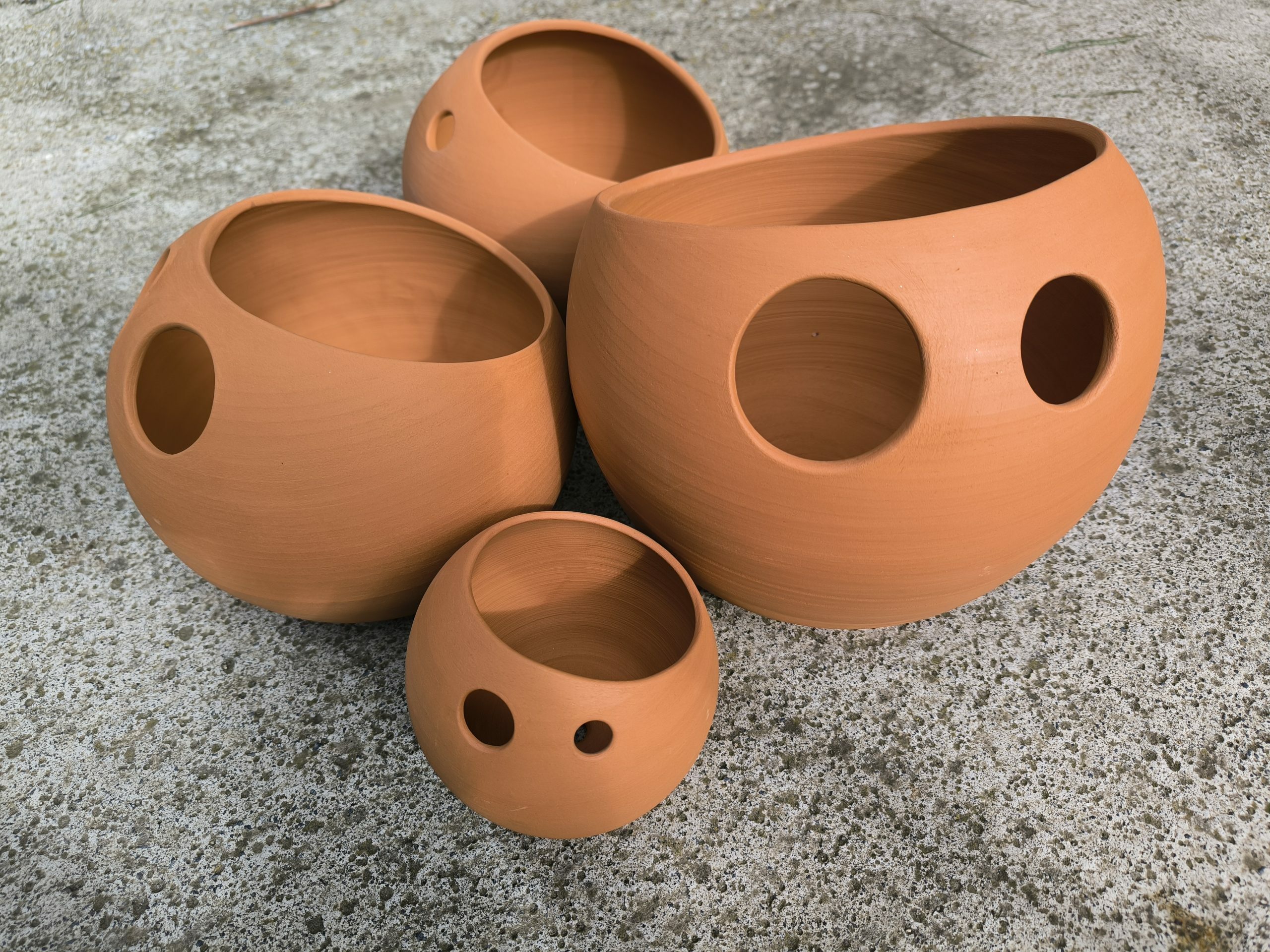 Els tests de la sèrie Malplena són de fang o de gres en color vermell o negre i sense esmalt. Estan pensades per a exterior i no tenen plat (es pot encarregar a part).